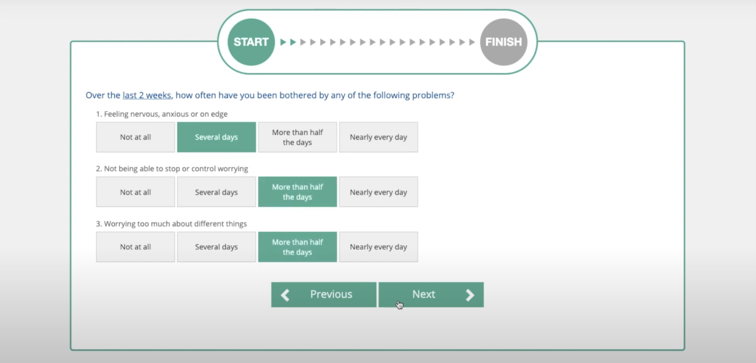 It uses two brief questionnaires to assess key symptoms of anxiety and depression.